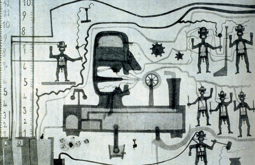 З кожною такою модифікацією неминуче відбувається процес викривлення, техніка позбавляється деяких своїх функцій, змінює принцип свого використання і змінює свого оператора. Розвиток техніки нерозривно пов’язаний з розвитком спеціалізацій. Індустріальна революція стала переломним моментом — техніка взяла гору над спеціалізацією і змінила відносини між людиною та знаряддям праці. Виникнення індустріальних машин призвело до безлічі страйків на Заході. Робітники руйнували промислові об'єкти й будинки промисловців. Одним з таких епізодів стало знищення скляної фабрики та вілли Ежена Бодо — бельгійського промисловця, який незадовго до цих подій впровадив на своїй фабриці ванні печі для плавлення скла. Робота з такими печами вимагала нижчої кваліфікації, ніж зі старими горщиковими печами, що дозволяло фабриканту замінювати висококваліфікованих (як правило — спадкових) склярів менш кваліфікованою робочою силою. Луддити були не настільки схильні до ненависті до техніки, як до фабричного способу життя. У робітників не було достатньої кількості часу на власні справи, робота була низькооплачуваною, а взаємодія з машинами тих років призводила до безлічі захворювань. [2]
