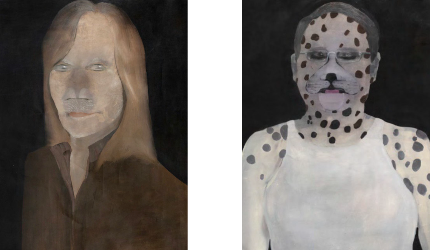 Конкретным примером вышесказанного могут быть представленные на выставке «портреты». Художник использует фотографии реальных людей, которые находит в интернете. Часть из них взята с сайтов знакомств, где цифровые образы существуют в формате «товара». Лишенные витринного контекста и перенесенные в пространство выставочного зала, они мутируют и превращаются в своего рода «химеры», рождающиеся на пересечении цифровой презентации и живописной деформации. В этих работах Пирумов продолжает размышлять о политике тела в ситуации, когда кожа становится границей, которую можно пересечь, нарушить, переписать.