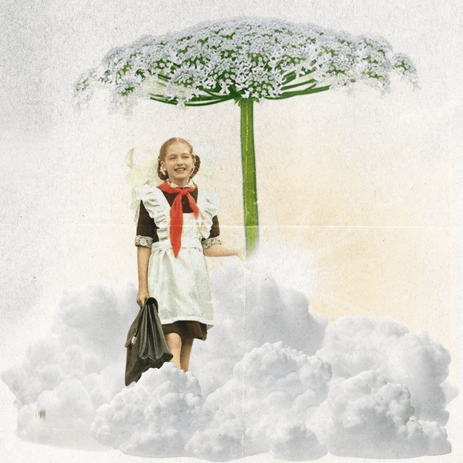 Как-то на даче, когда мы были маленькими, мне и моим друзьям рассказали историю о детях, которые играли с одним растением, представляя, что его стебель — бинокль или телескоп, и сожгли себе глаза. Так я узнала о борщевике. В тот же год в одном из учебников русского языка для начальной школы наш класс читал небольшой текст под названием «Борщевик». Автор восхвалял полезные свойства растения, а также предлагал сделать из стебля маленькую дудочку, которую в конце игры советовал не выбрасывать, а съесть — ведь борщевик «хрустящий, словно огурчик». Я не смогла найти этот рассказ в 2024-м году, но я точно помню, как возмутил меня весь текст, и особенно сравнение борщевика с огурцом. Я не знала, что существуют другие безопасные виды, такие как борщевик сибирский, который, вероятно, и упоминался в «Родной речи». Я была возмущена, ведь наша дача была усеяна борщевиком Сосновского. Описанный в 40-е годы и названный Идой Манденовой в честь ее учителя, он был выдернут из экосистемы Кавказа, в которой у того было свое место, и перемещен на поля агробиологических экспериментов. Предполагалось, что он поможет побороть послевоенный голод: силос должен был кормить скот, скот — людей, а люди — тоталитарную машину. Но борщевик сбежал. Вступив в жестокую коллаборацию с солнцем, он открыл в себе способность обжигать наши слизистые, кожу, язык. Я много думала о борщевике Сосновского, о том, как он, никого не трогавший в своем первоначальном ареале, стал уничтожать экосистемы и захватывать территории. Я думала о том, что при нагревании Земли коралловые рифы выцветают, а борщевик продвигается дальше, распускаясь скучными зонтиками. О том, что, однажды став жертвой неудачного эксперимента, он теперь навсегда — соцветие колониальности, милитаризма, научного невежества, патриархата, токсичности и однообразия форм. Я решила представить, как будет выглядеть планета, когда установится господство борщевика. Эту эпоху я назвала Heracleocene (или Борщевикоцен). Но я также решила не отказываться от надежды. Ей отдано не так много места, но для меня она — самое важное, что происходит в этой поэме; она — то, ради чего я искала этот язык.