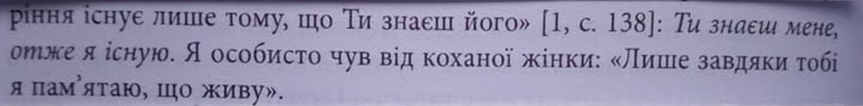 6. Як зазначалось, «узнай себе» – не акт розуму, а зустріч з тим, хто являє себе як дар, з ким людина сполучається у цілісність без злиття [4, с.168, 191, 273] та перетворюється на когось зовсім іншого – стає собою. Це друге, справжнє народження людини. Ніхто людиною не народжується, а лише стає. З’ясуємо це детальніше.