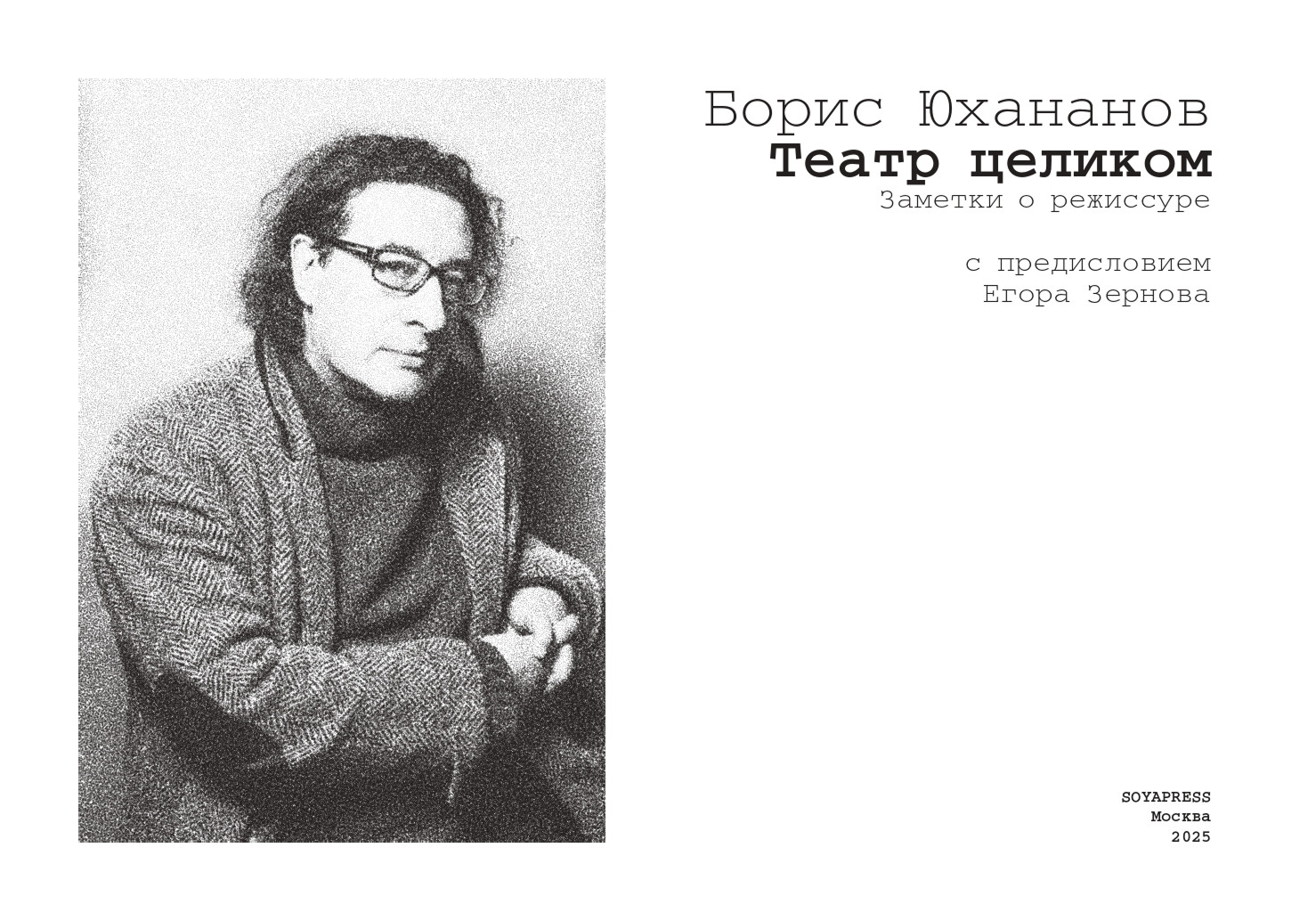 В издательстве SOYAPRESS вышел сборник режиссера театра, кино, видео и телевидения, продюсера, художника и педагога Бориса Юхананова «Театр целиком». В книгу вошли статьи, доклады, лекции, манифесты и выступления автора с 1984 по 2018.